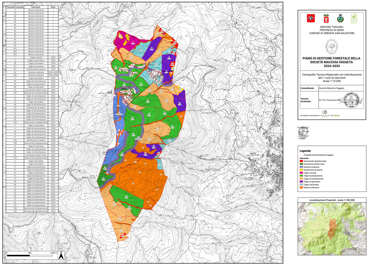 Nel corso del 2023 sono stati eseguiti, dallo Studio Tecnico Forestale Dott. Billi Francesco, i rilievi per portare alla redazione del nuovo Piano di Gestione Forestale della Società Macchia Faggeta.
